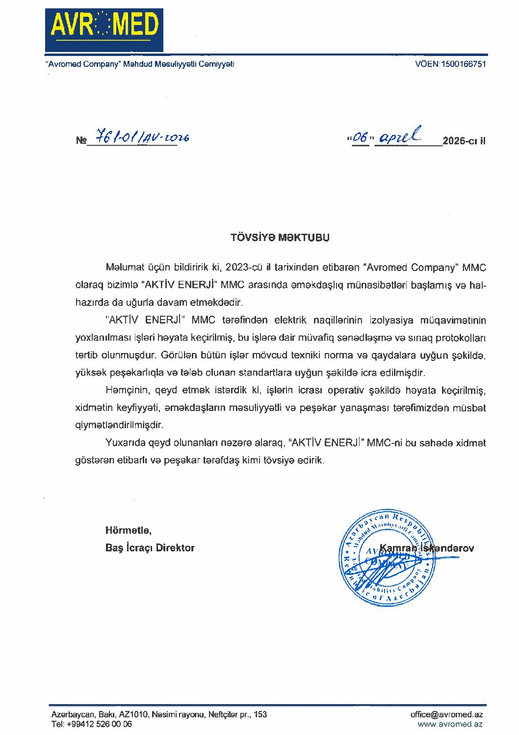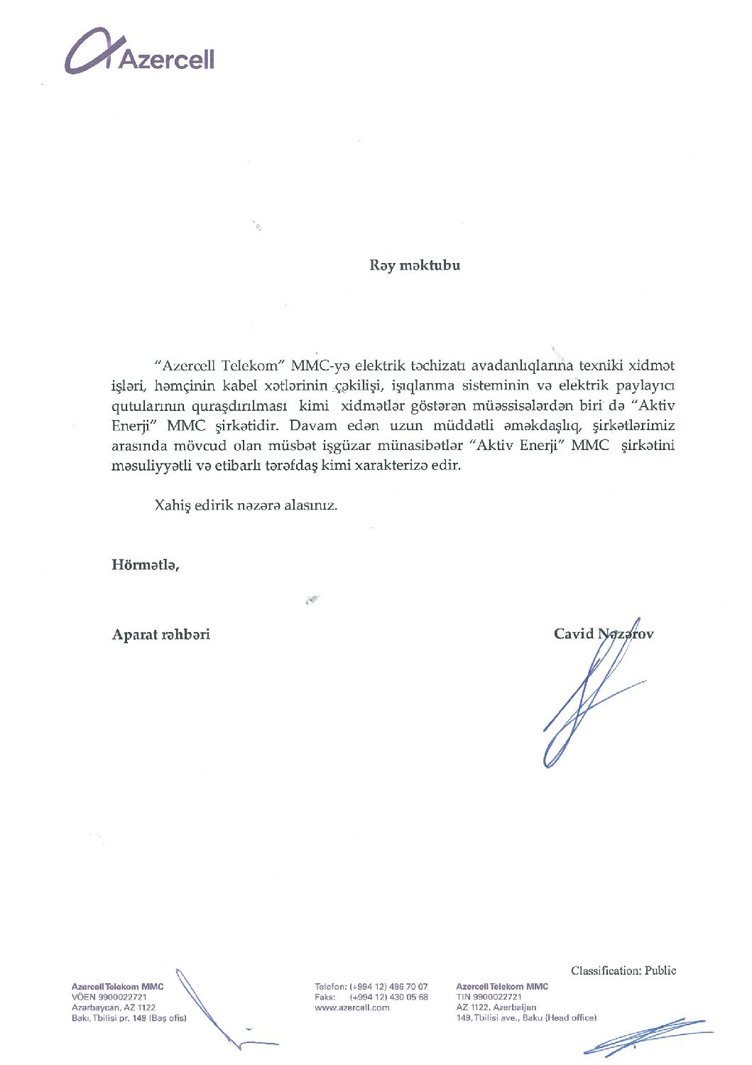 Salam əziz müştəri.
